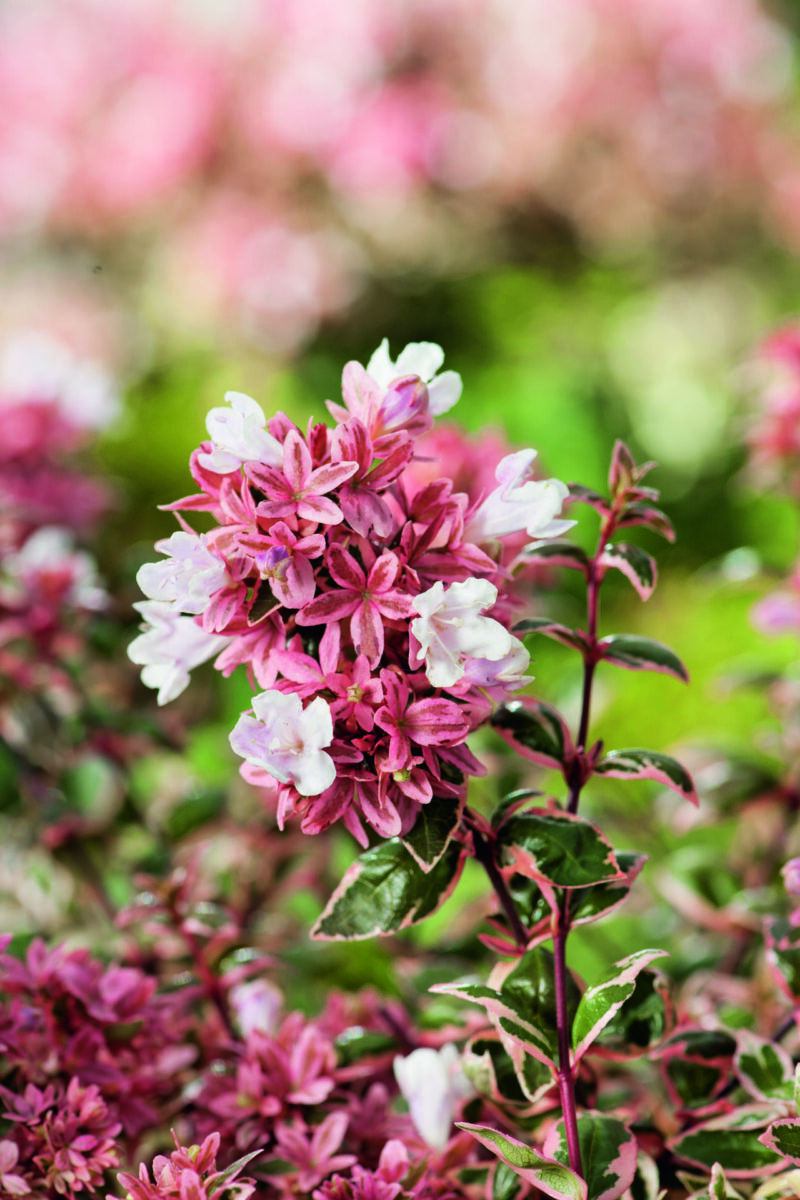 Abelia grandiflora ‘Magic Daydream’ is een wit bontbladige heester die half wintergroen is. Deze vaste plant bereikt een volgroeide hoogte van ongeveer 1 meter. In het najaar heeft Abelia grandiflora ‘Magic Daydream’ een prachtige herfstverkleuring. De bloei van Abelia grandiflora ‘Magic Daydream’ geeft heerlijk geurende roze witte bloemen.