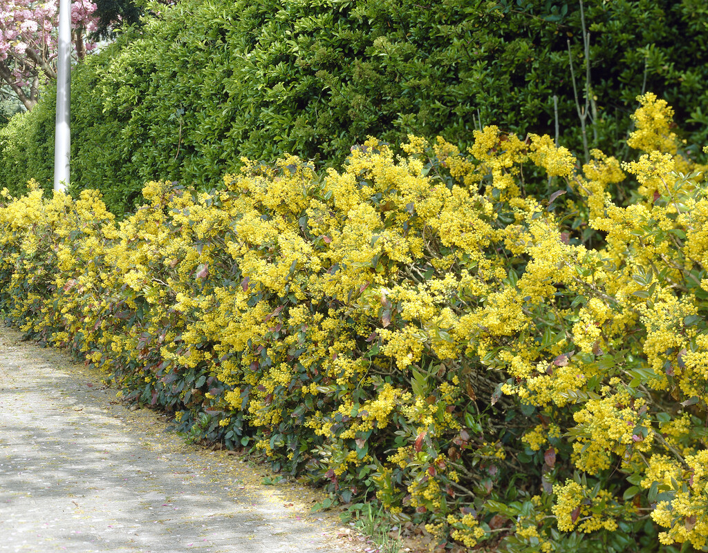 Dieser Mahagonistrauch ist winterhart und kommt auch mit kalten Wintern im niederländischen Garten gut zurecht. Sein immergrünes Laub verleiht dem Beet selbst im Winter Struktur und Farbe.