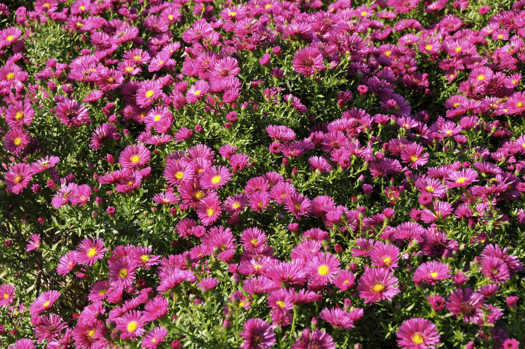 Die robuste und langblühende Herbstaster Aster dumosus 'Jenny' bringt Farbe und Leben in den Garten, wenn viele andere Pflanzen bereits ruhiger sind.