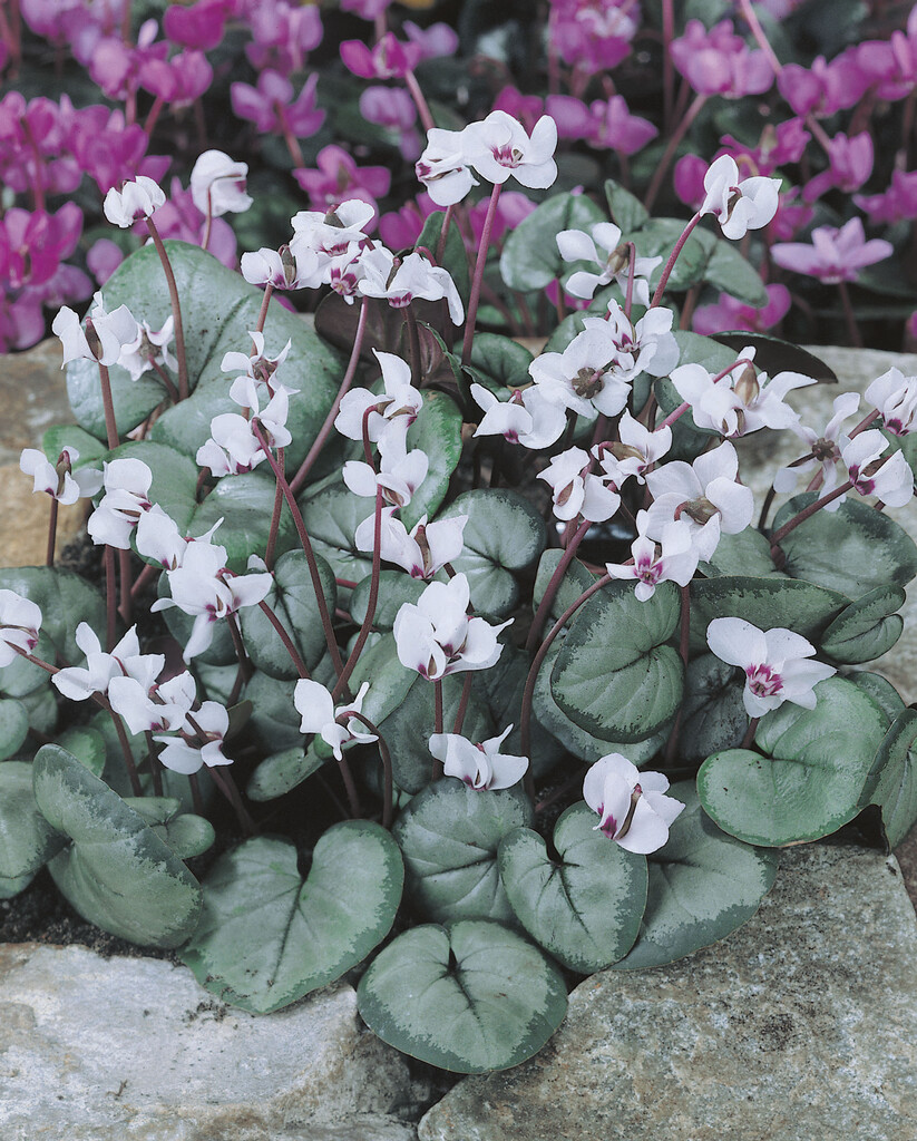 Dieses weiße Alpenveilchen eignet sich ideal für Beeteinfassungen, Steingartenbeete, naturnahe Pflanzbereiche und unter Bäumen oder Sträuchern, wo eine frühe Farbgebung erwünscht ist.