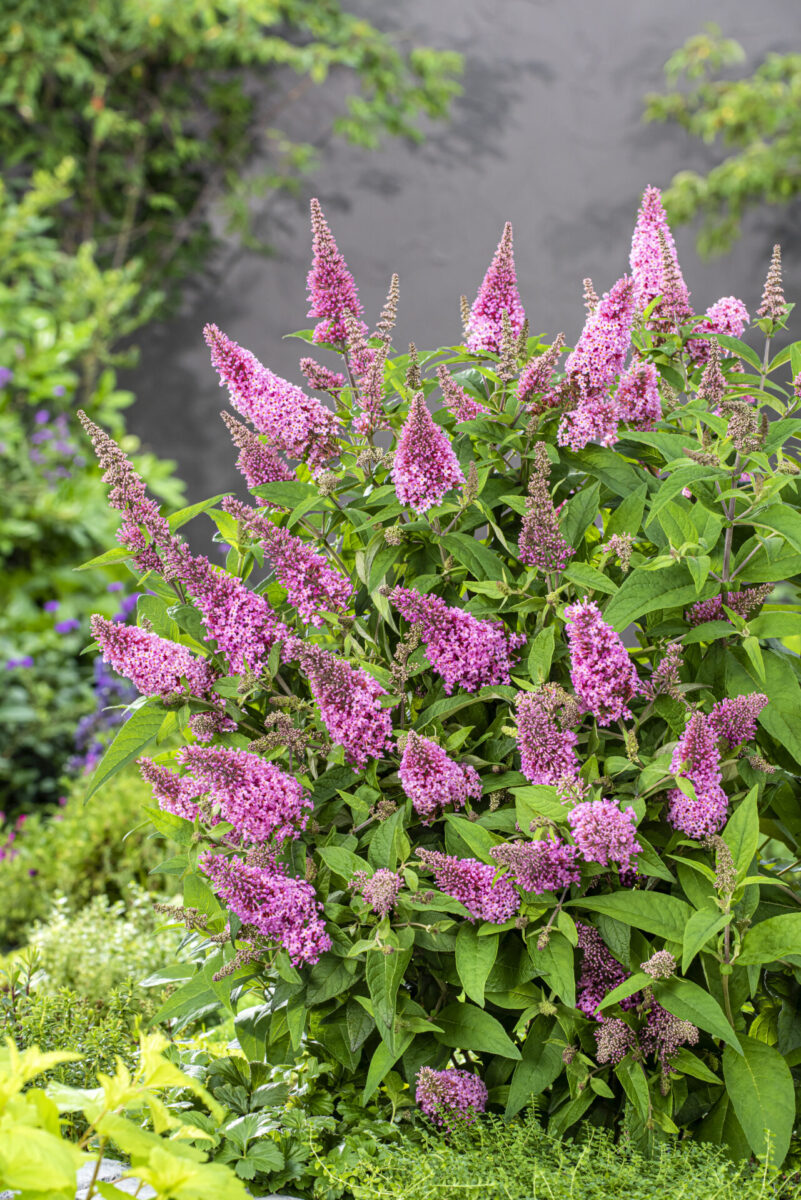 Buddleja davidii ‘Butterfly Candy Little Pink’ is een onderhoudsarme en kleurrijke vlinderstruik die met zijn zachte bloemen en nectarrijke kenmerken structuur en leven toevoegt aan zonnige tuindelen.