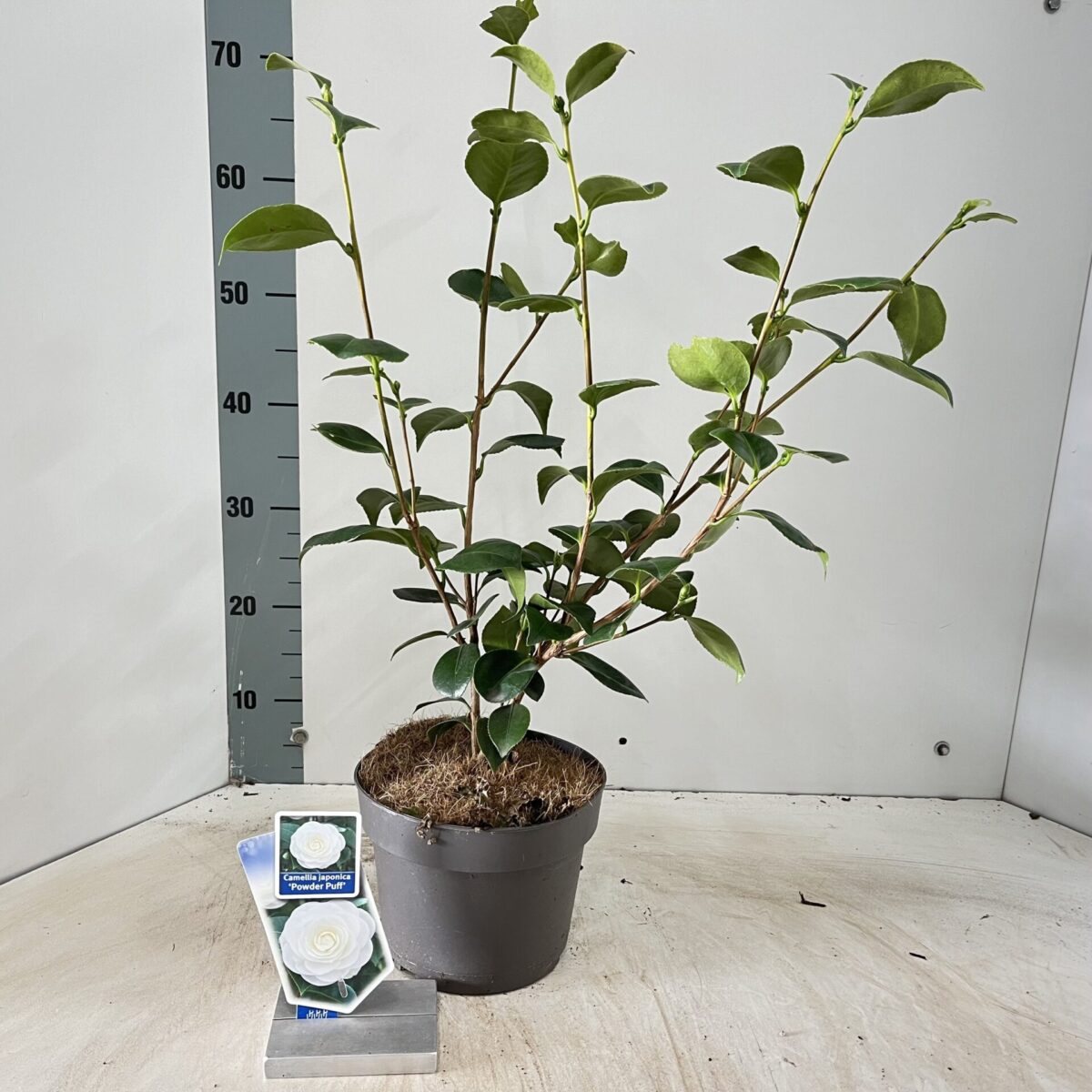 Camellia japonica ‘Powder Puff’ ontwikkelt zich tot een middelgrote, bossige struik met een gelijkmatige, ronde groeiwijze. Door zijn compactheid is hij geschikt voor middelgrote tot grotere tuinen waar hij een prominente positie kan innemen.