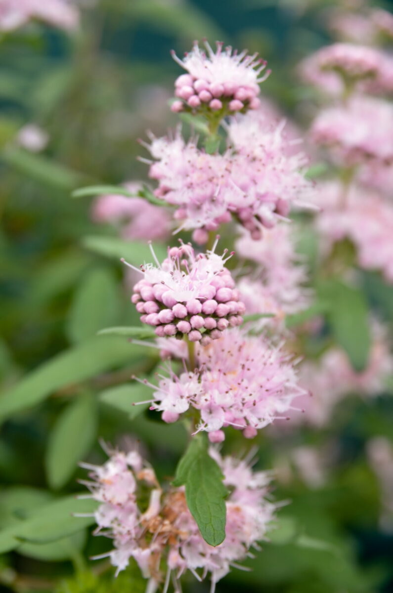 Caryopteris ‘Pink Perfection’ is een elegante en bijvriendelijke heester die met zijn zachte bloemen laat kleur en leven in de nazomertuin brengt.