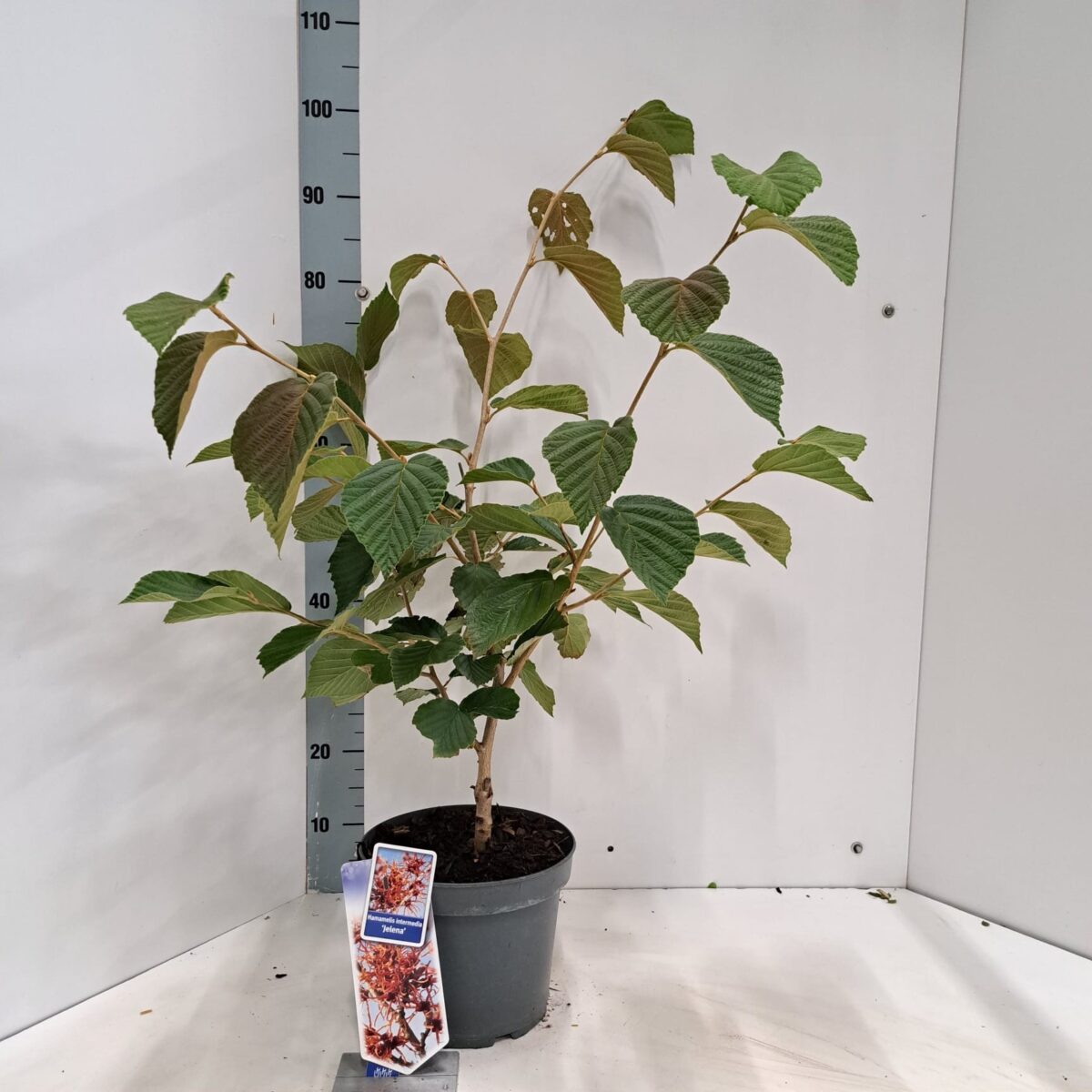 Deze toverhazelaar bereikt doorgaans een hoogte van 150–200 cm en vormt een gelijkmatige, losse struik met heldergele bloemen.