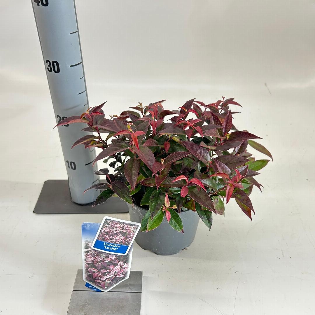 Leucothoe walteri ‘Lovita’ bereikt doorgaans een hoogte van 60–80 cm en vormt een gelijkmatige, groenblijvende heester met sierlijk overhangend blad.