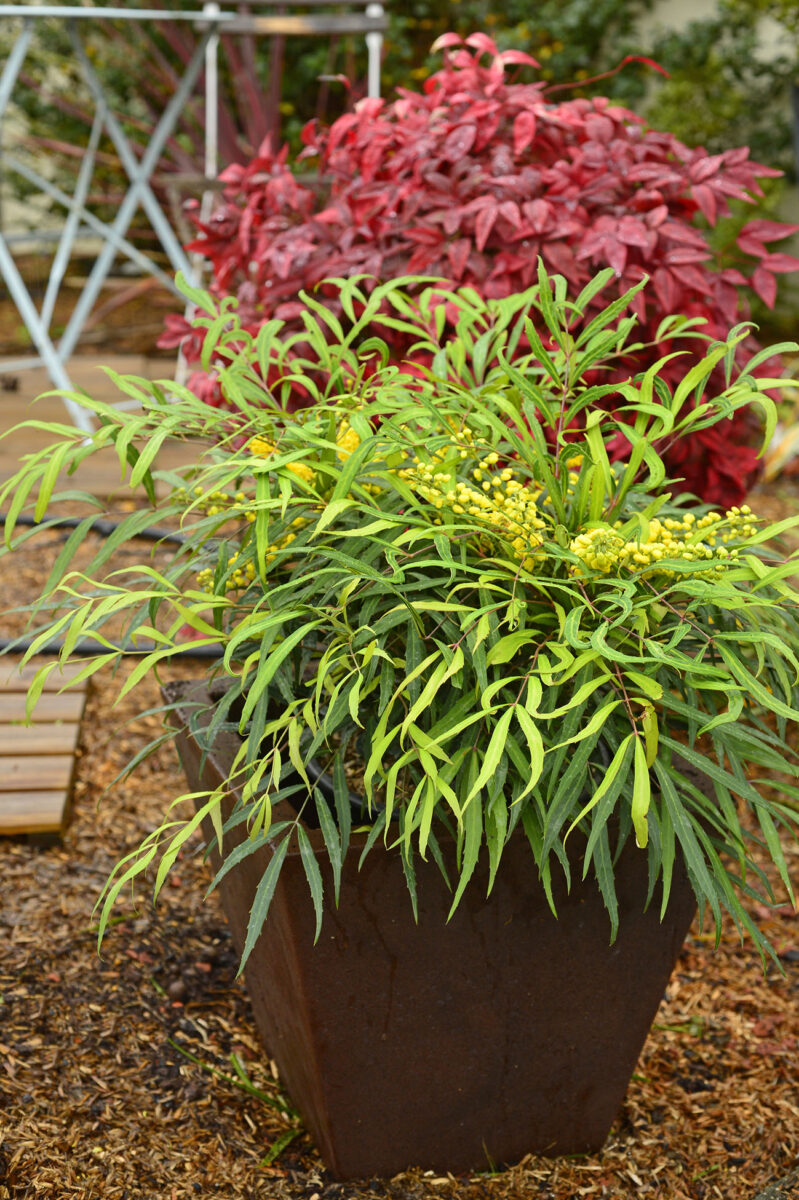 Mahonia eurybracteata ‘Sweet Winter’ is een elegante en wintergroene heester die met zijn bloemen en blad ook structuur en aantrekkingskracht geeft in de koudere maanden.