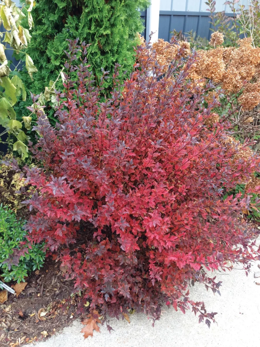 Physocarpus opulifolius ‘Tiny Wine’ is een bladrijke heester met diepe kleur die structuur en contrast brengt aan diverse tuinstijlen.