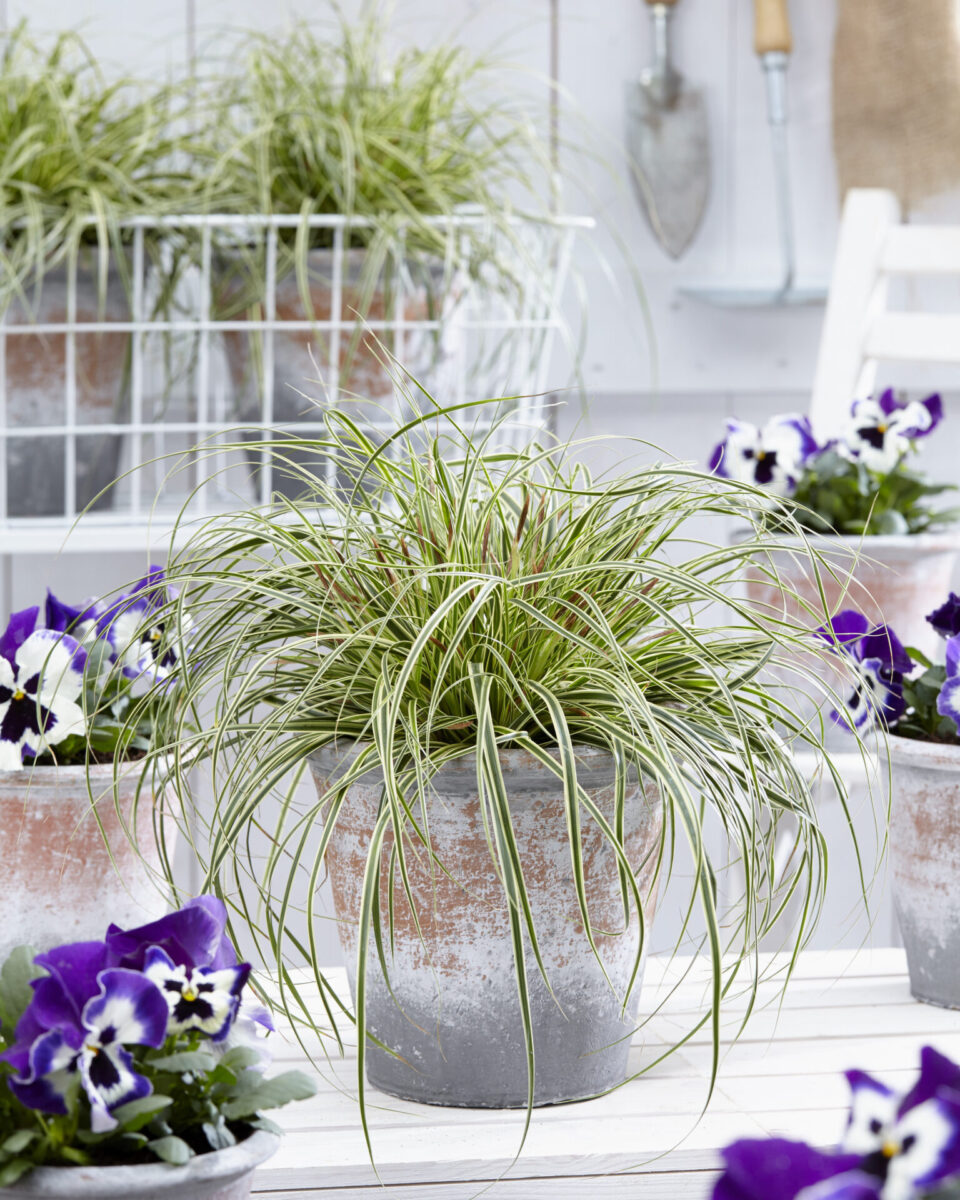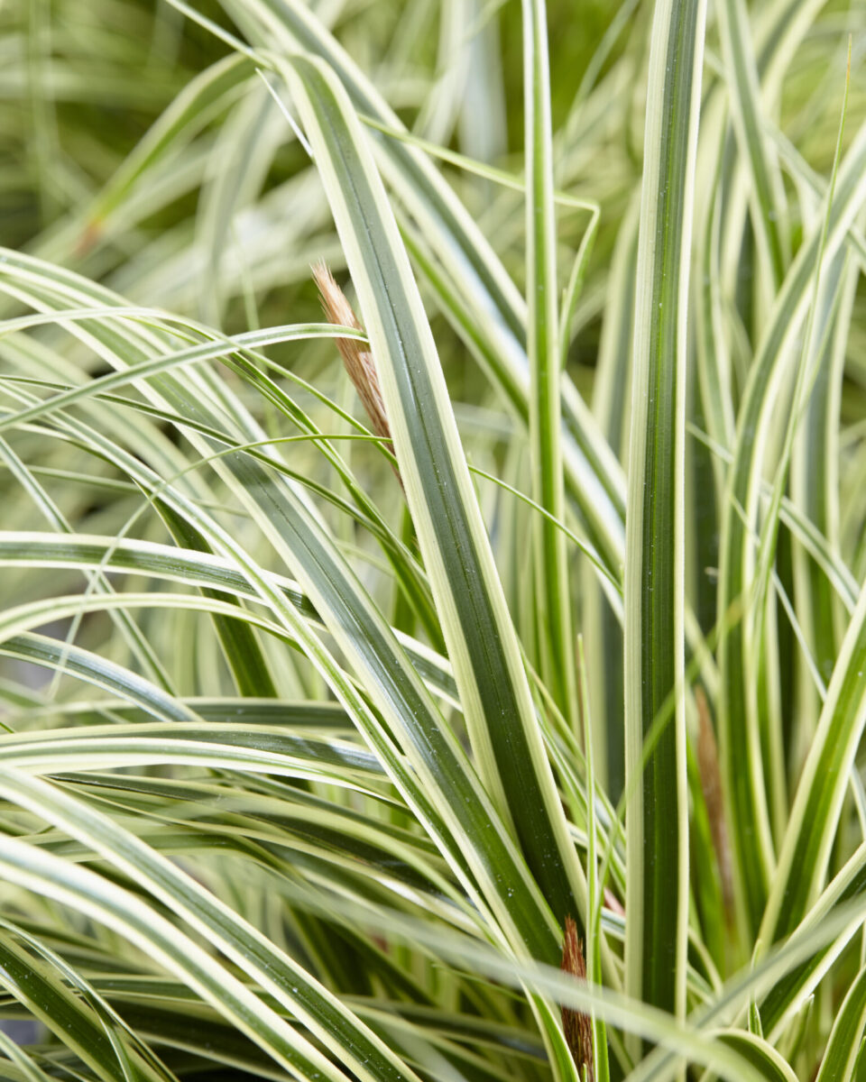 Carex oshimensis ‘Evercolor Evercream’ is een elegante sierzegge die met zijn crèmewitte blad een zachte maar gestructureerde toets geeft aan beplantingen door het hele jaar heen.