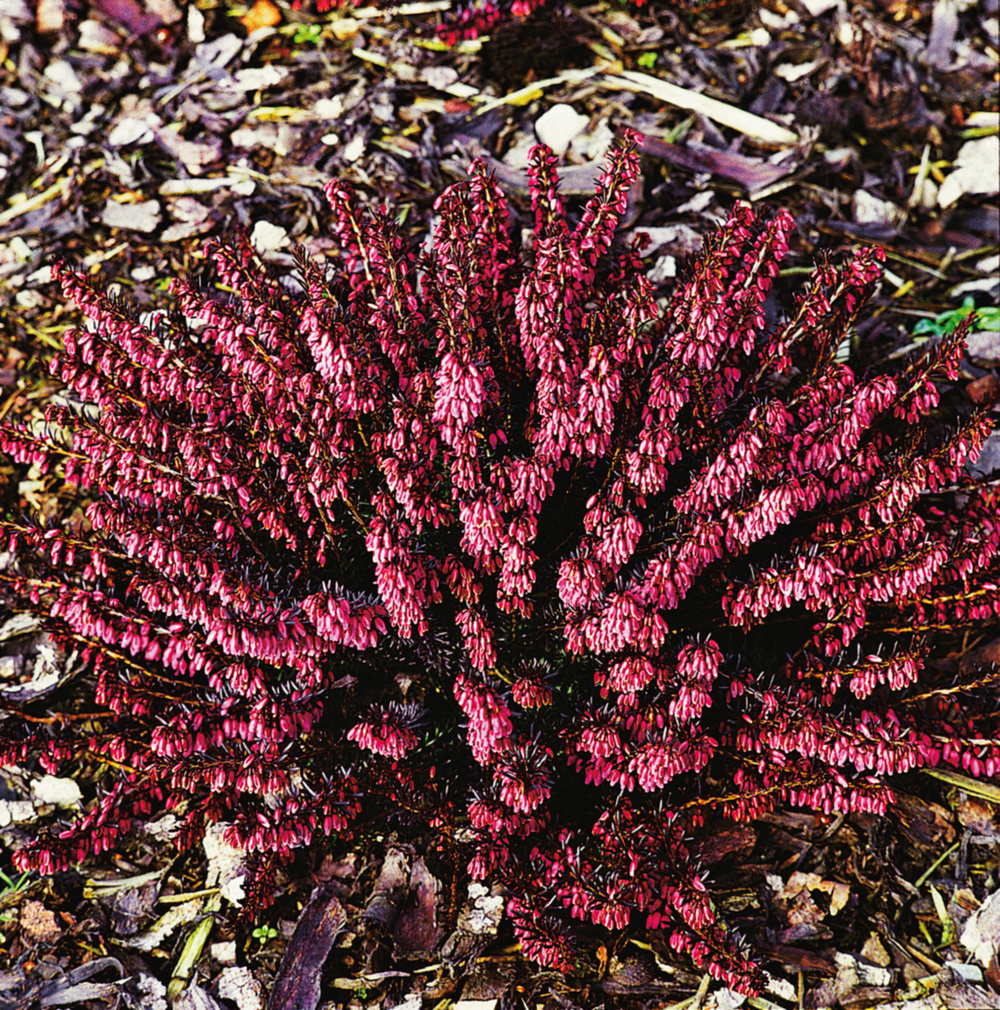 Erica carn. ‘Winter Ladies Rot’ is een levendige en kleurige winterheide die met zijn rode bloemen structuur en sfeer aan de tuin geeft gedurende de koudere maanden.