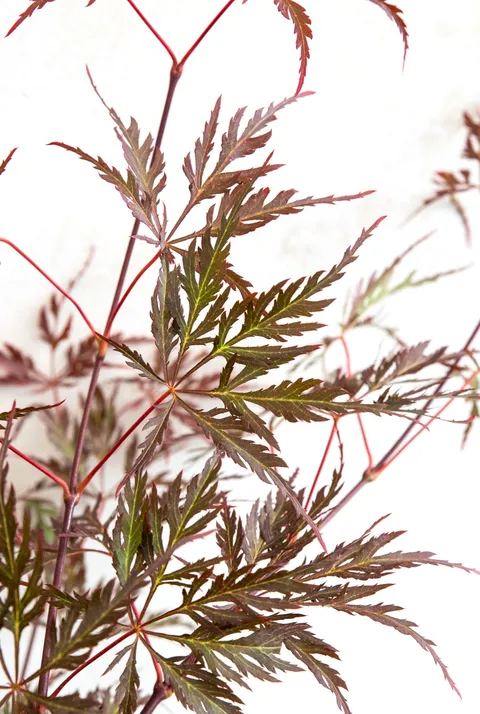 Acer palmatum ‘Garnet’ is een sierlijke Japanse esdoorn met diep ingesneden, roodpaars blad en een elegante, licht overhangende groeiwijze. Deze cultivar behoort tot de dissectum-groep en wordt vooral gewaardeerd om zijn verfijnde bladstructuur en intense kleur. Door de rustige groei en het compacte karakter is ‘Garnet’ geschikt voor zowel kleinere tuinen als potten.