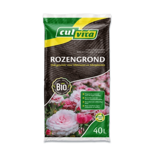 Culvita Rozengrond is samengesteld uit circulaire grondstoffen (ca.50%) en compost (ca.50%).