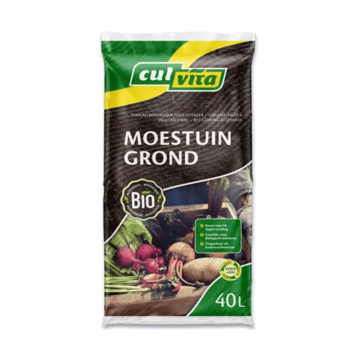 Culvita Biologische Moestuingrond is samengesteld uit 100% natuurlijke en hoogwaardige grondstoffen zoals tuinturf, biovezel, kokos, franse boomschors en groencompost. Culvita Biologische Moestuingrond bevat een organische meststof voor ca. 3 maanden. Deze meststof is een ideale aanvulling met de juiste samenstelling voor groenten, fruit en kruiden. Het bestandsdeel magnesium zorgt voor een mooie groene kleur bij bladgroenten. Tevens draagt de meststof bij aan een rijkere oogst. Afhankelijk van de temperatuur en behoeften van de planten kan bijgemest worden met Culvita Organische Mestkorrels 10-4-6+3MgO.